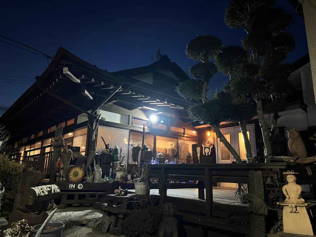 室内は漆黒の梁と柱がたくさん使われており雰囲気もよかったです。