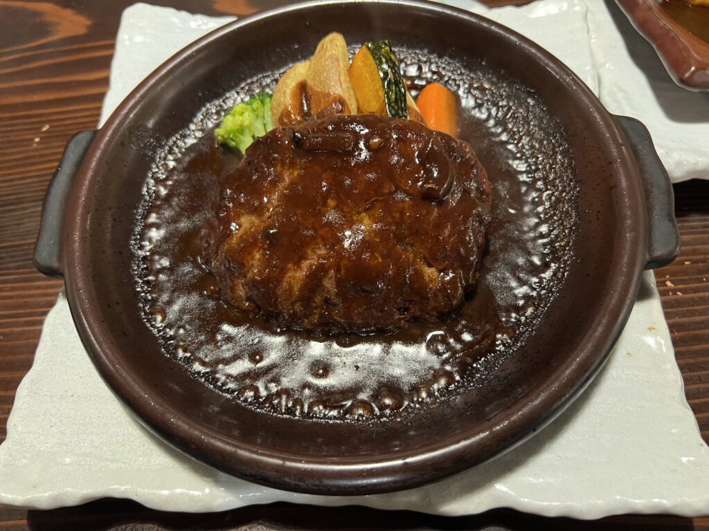 ハンバーグもデミでお願いしました。こちらもジューシーでとても美味しかったです。